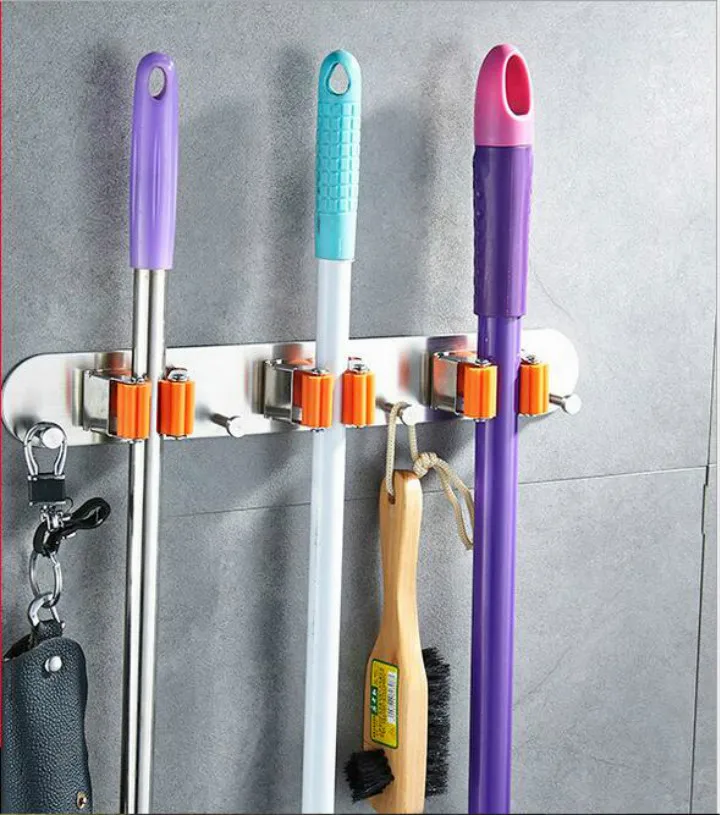 Broom Mop Stainless Wall Mount Holder Broom Mop Holder Wall Mount create flexible storage in your laundry, linen cupboard or garage with this hang up wall mounted broom & mop holder set in grey. a plastic and steel rack with three handle holders and two hooks for garage storage. This compact, rust free, wall mounted organiser includes five. zongool 2 pack mop broom holder wall mount, broom organizer. Broom Mop Holder Wall Mount.
